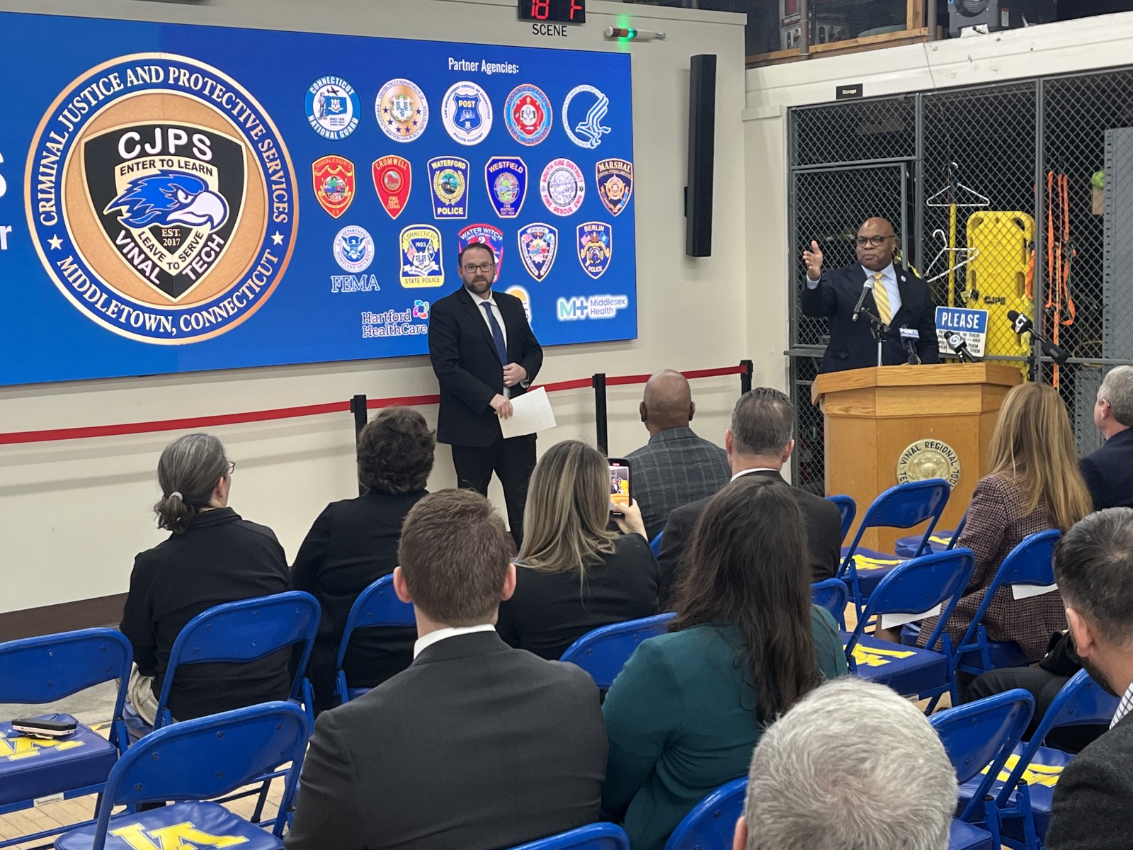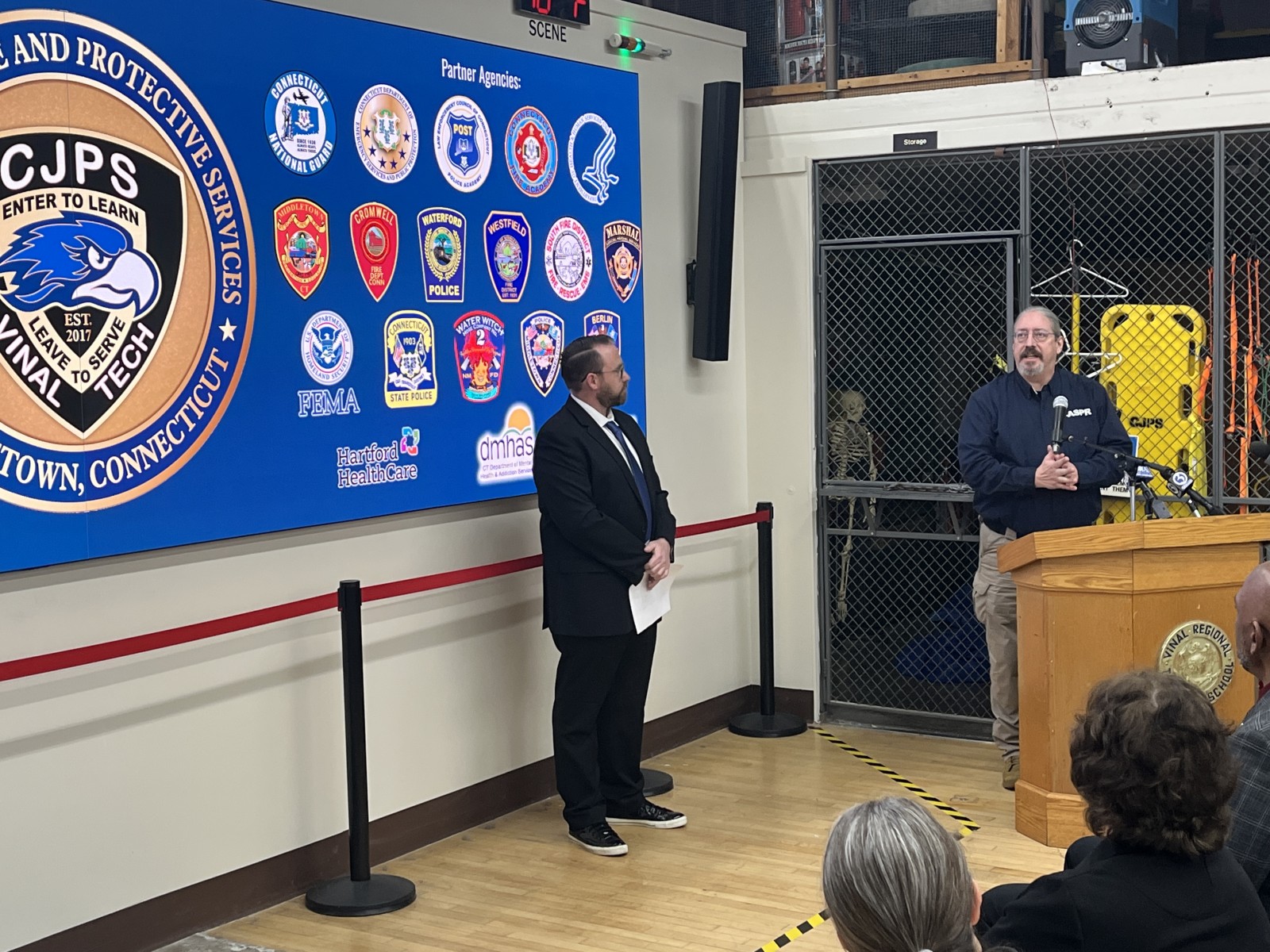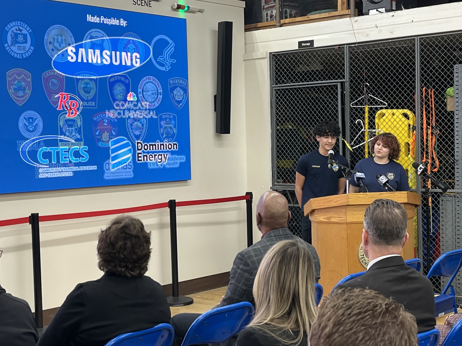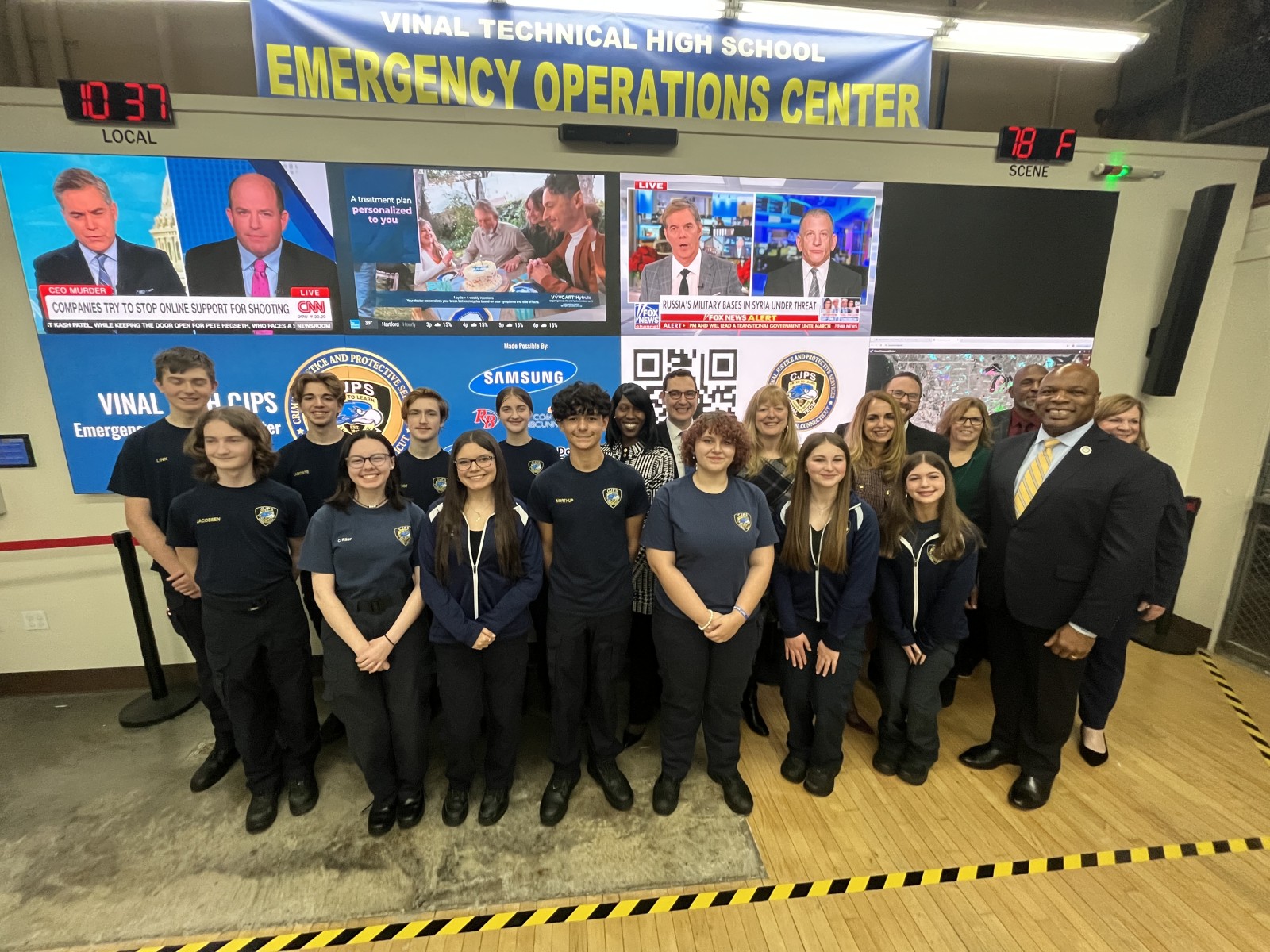 Middletown, CT — December 10, 2024 – Vinal Technical High School’s Criminal Justice and Protective Services (CJPS) Program hosted a landmark event today, unveiling a $300,000 upgrade to its Emergency Operations Center (EOC), made possible by Samsung, Comcast, and RnB Enterprises. The event also marked the debut of a groundbreaking initiative: a free, student-developed 365-day-per-year intelligence briefing for first responders nationwide.